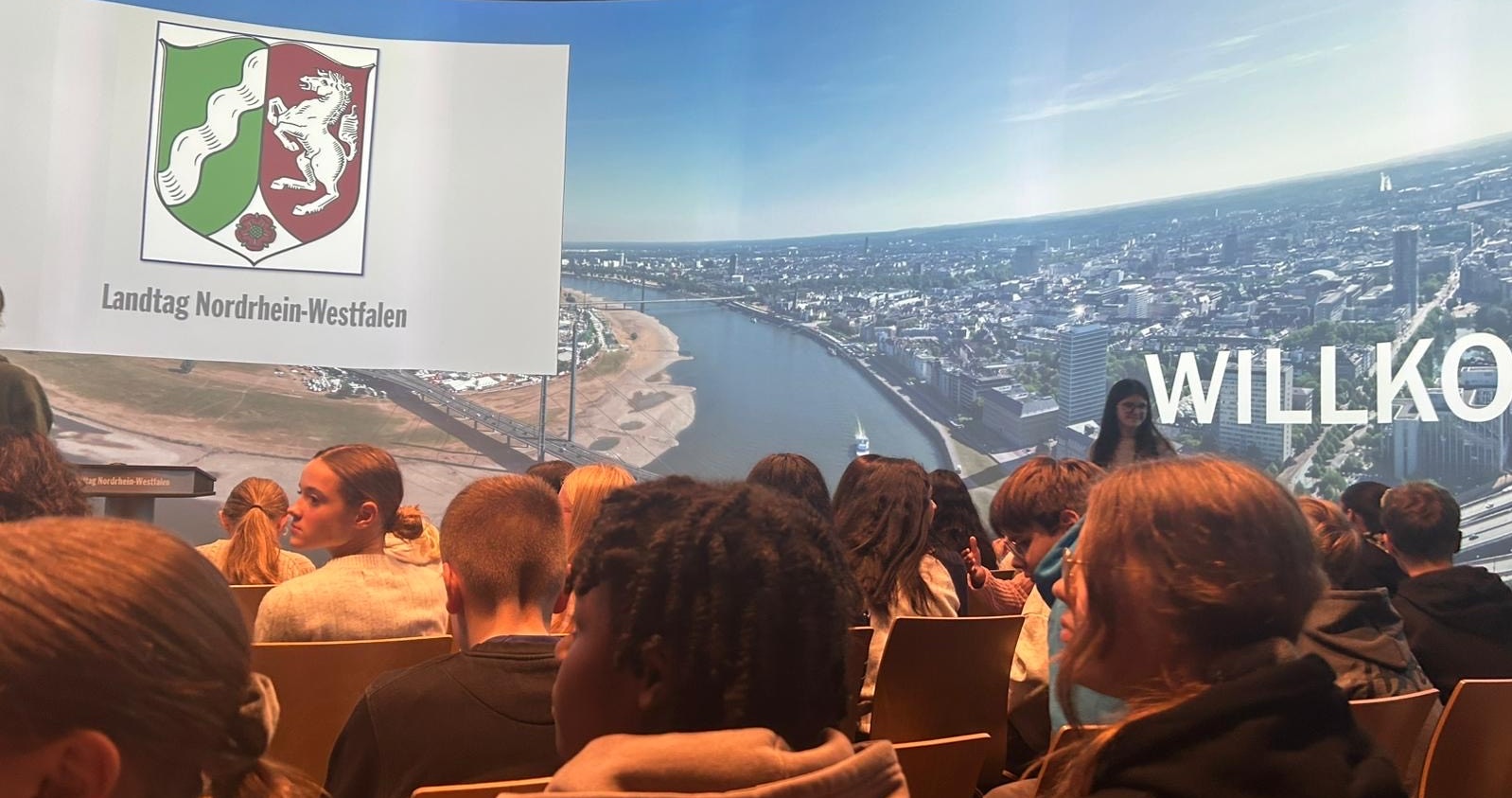 Im Politikunterricht der 8a und 8c haben sich die Schülerinnen und Schüler intensiv mit zentralen Elementen unserer Demokratie beschäftigt. Dazu gehörten die Aufgaben des Landtags, die Rolle der Parteien, Wahlgrundsätze und die Frage, wie politische Entscheidungen auf Landesebene und in Städten wie Dortmund zusammenwirken.